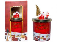 CANDELA NATALIZIA COPERCHIO DECORATO VANIGLIA FRUTTI ROSSI GR.220