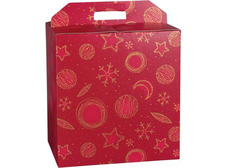 SCATOLA PORTAPANETTONE E BOTTIGLIA DOCORATA ROSSA CM.30.5X22.5X35