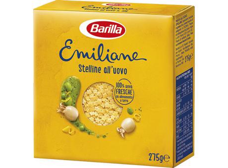 Le Stelline all’uovo Emiliane Barilla sono minuscole stelle di pasta all'uovo che stimolano gusto e fantasia a tutte le età . Preparate con uova fresche, le Stelline all’uovo trasformano ogni primo piatto in un’incantevole proposta. Ideali con il brodo, per una semplice ma saporita minestra; in formato da 250g. Ingredienti: semola di grano duro, uova fresche di categoria A. Data di scadenza: 17/07/2027 |