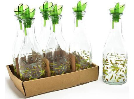 Oliera in vetro decorata con foglie d'ulivo e tappo dosatore - 280 ml