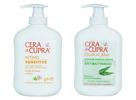 Cera di Cupra sapone intimo protegge, lenisce previene le irritazioni. Cassa mista composta da: - Cera di Cupra intimo sensitive petali di rosa e miele - Cera di Cupra intimo antibatterico menta miele propoli |